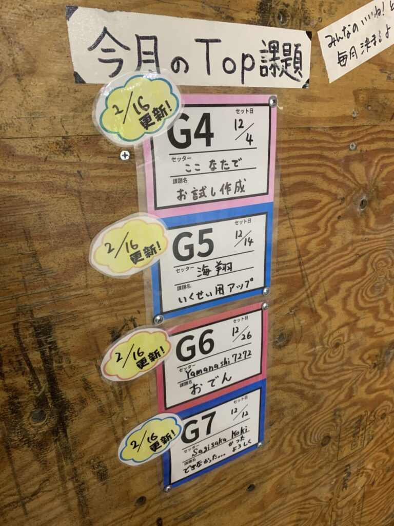 12月中にまぶし壁アプリ「Stokt」に登録された課題で、「いいね」「コメント」数が多いものをTOP課題としてテープで張り出ししています!