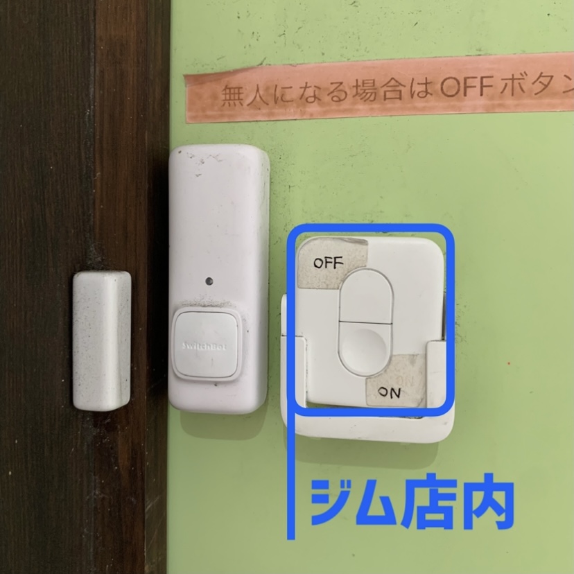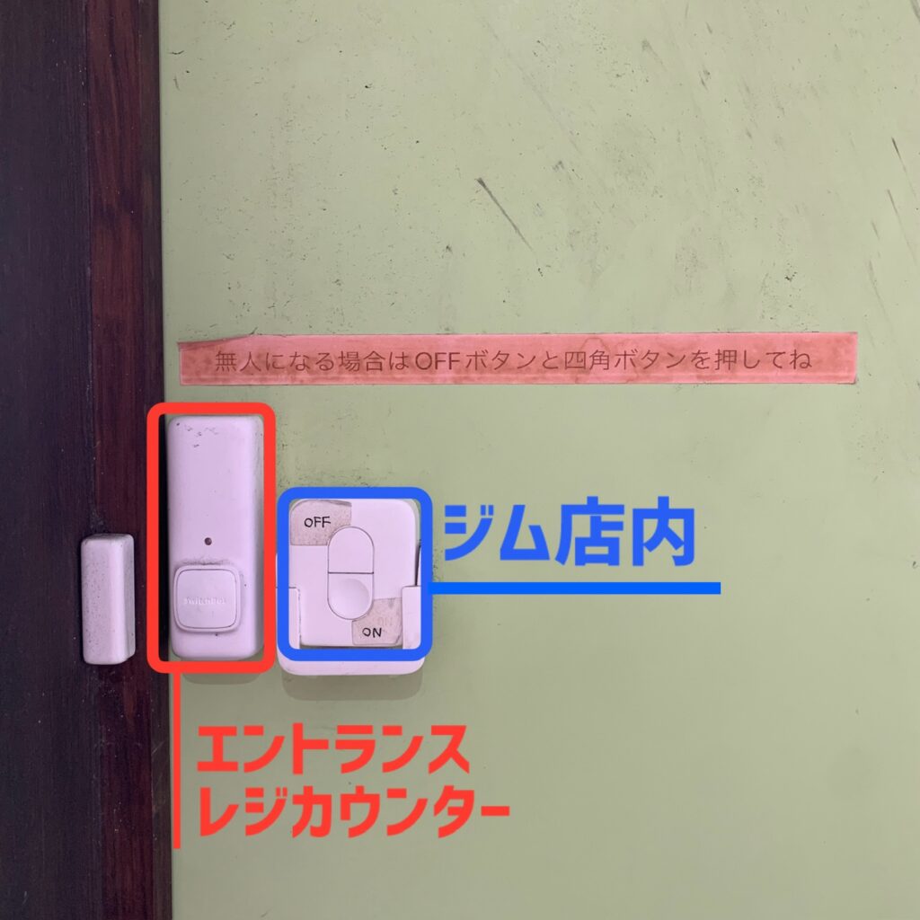 | ジム店内 | 入口扉右側の正方形スイッチ:OFF |